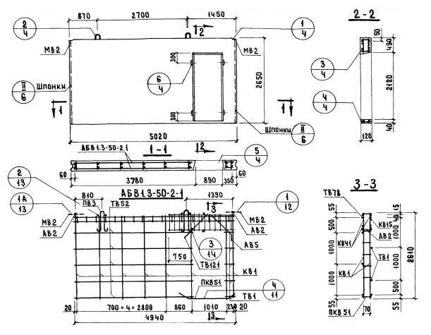 В1.3-50.27.12-2.1    Внутренние стеновые панели   (Серия 1.131-1).