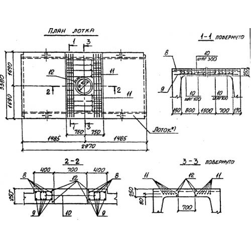 Ло 33/2  Лотки теплотрасс с отверстием Серия 3.006.1-2/87.
