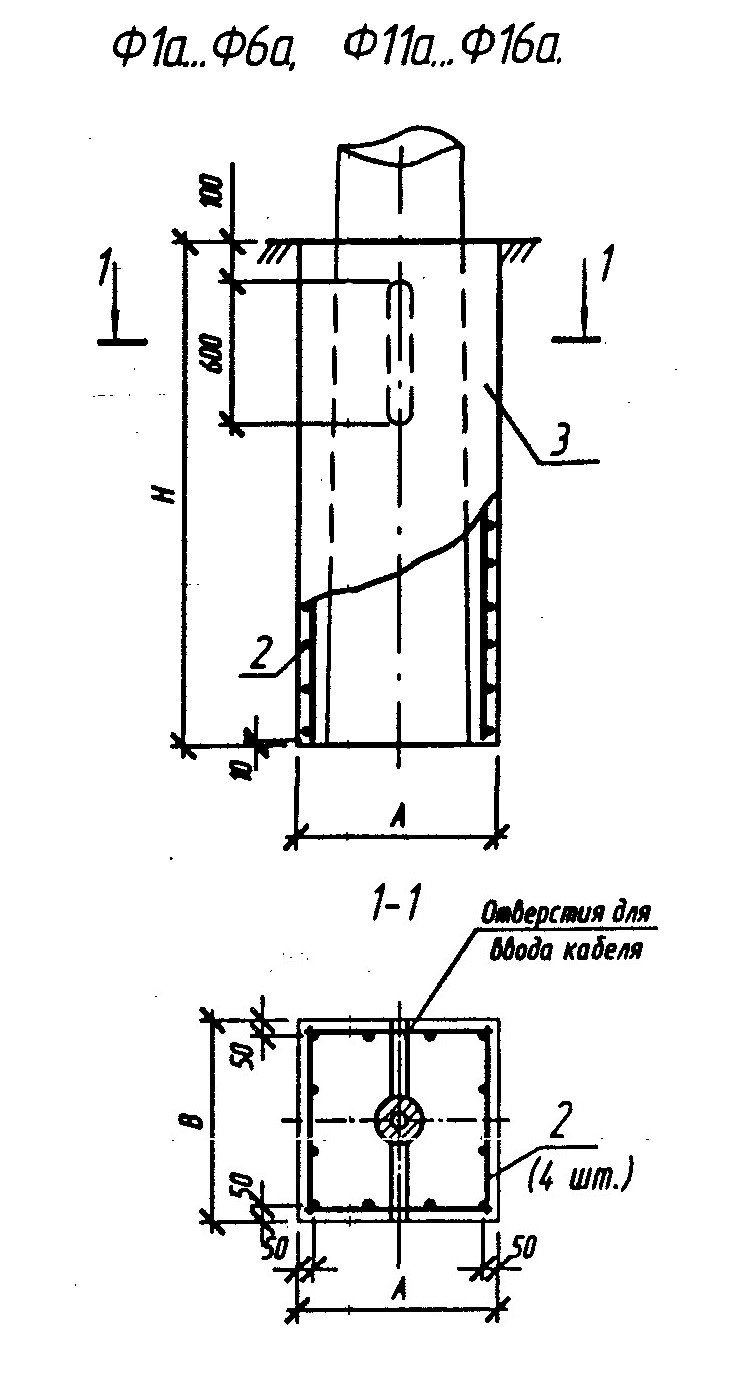 Рассчитать стоимостьФундамент Ф 1а изготавливается из тяжелого бетона и предназначен для установки стоек СКЦ согласно нормам серии Б3.507.1-3.04.